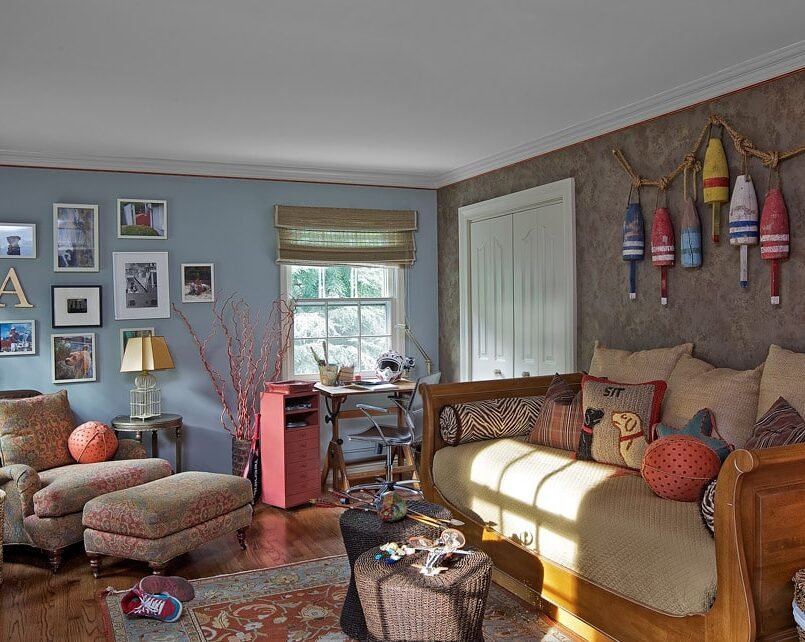 Children’s rooms no longer need to get short shrift. By incorporating the overall design direction of the house, or a child’s favorite color, sport or hobby we can pull a scheme together that is sophisticated in design but with a light and friendly heart.