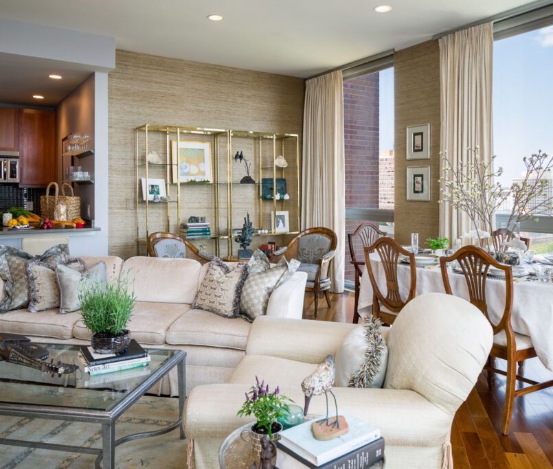 Life’s transitions are often about giving one thing up and building something new that is a better fit for where you are now in life. The client had lived in the leafy suburbs of Summit, New Jersey for over 20 years, but now it was time to lighten up while moving to an easier urban outpost. The move made visiting old friends and their adult children easier.